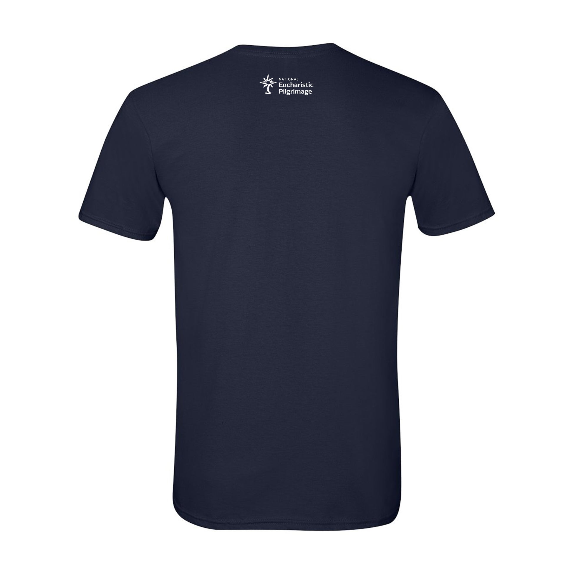 Remember that we are "One Nation Under God" in your everyday wardrobe with this versatile short sleeve t-shirt. Crafted for comfort and style, it's the perfect layering piece or standalone essential for any occasion. Soft, breathable fabric keeps you comfortable all day long, while the clean design works with virtually any outfit in your closet. Our exclusive One Nation Under God design commemorates the 250th anniversary of the United States and the St. Frances Xavier Cabrini route of the National Eucharistic Pilgrimage.